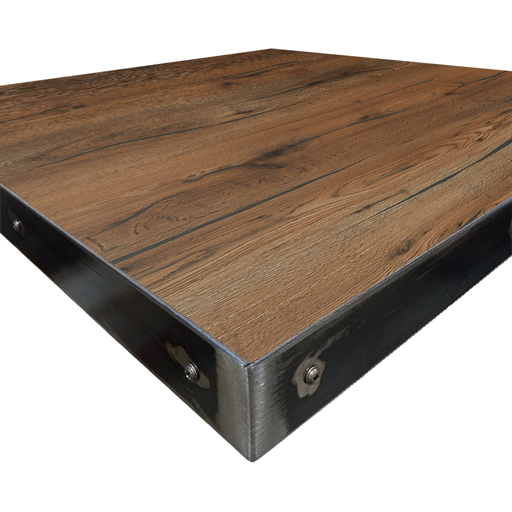• 1-1/8″ thick, 45 lb. industrial-grade particle board core with 2″ hot-rolled, 11 gauge steel edge with exposed fasteners