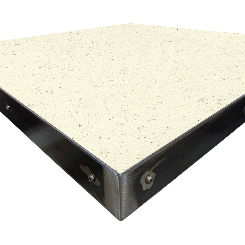 • 1-1/8″ thick, 45 lb. industrial-grade particle board core with 2″ hot-rolled, 11 gauge steel edge with exposed fasteners