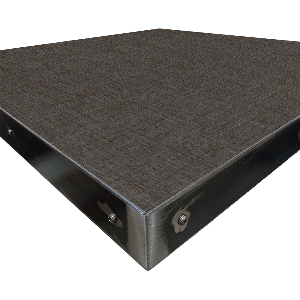 • 1-1/8″ thick, 45 lb. industrial-grade particle board core with 2″ hot-rolled, 11 gauge steel edge with exposed fasteners