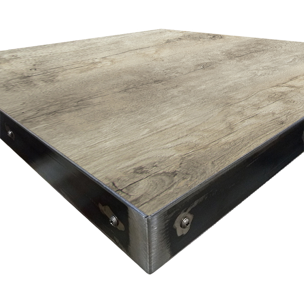 • 1-1/8″ thick, 45 lb. industrial-grade particle board core with 2″ hot-rolled, 11 gauge steel edge with exposed fasteners