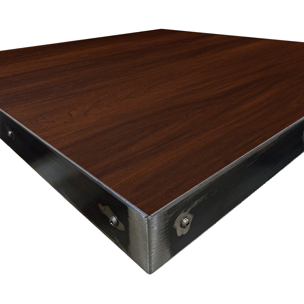 • 1-1/8″ thick, 45 lb. industrial-grade particle board core with 2″ hot-rolled, 11 gauge steel edge with exposed fasteners