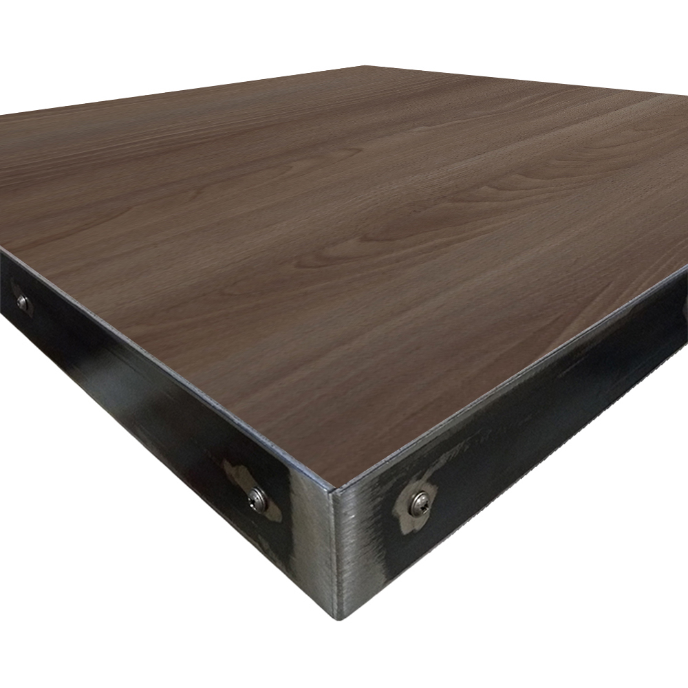 • 1-1/8″ thick, 45 lb. industrial-grade particle board core with 2″ hot-rolled, 11 gauge steel edge with exposed fasteners