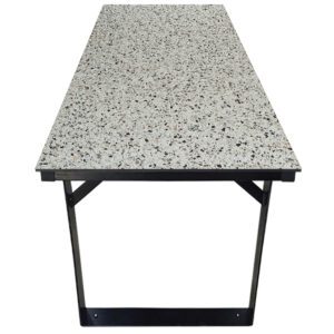 - 1-1/2″ steel square tubing with 14 gauge 1/4″ flat steel legs.