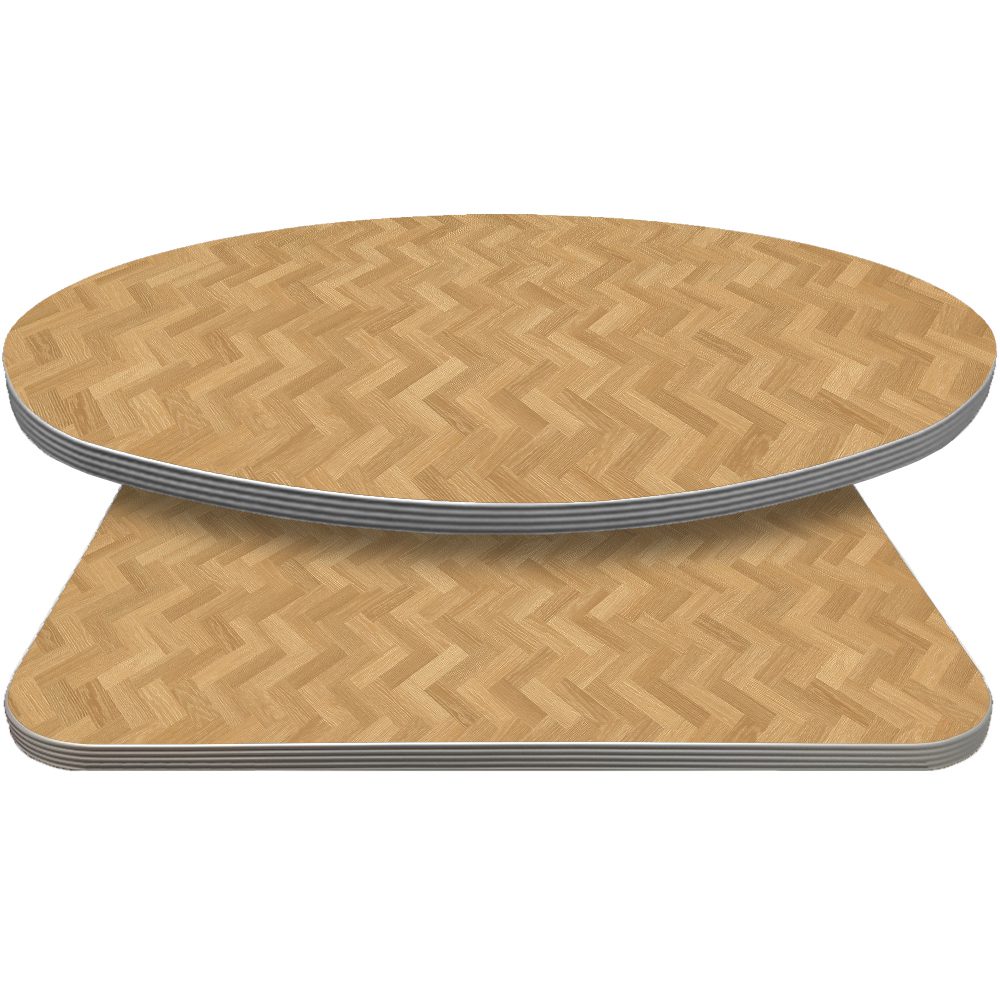 • 1-1/4″ thick, 45 lb. industrial-grade particle board core with high-quality metallic silver rippled rubber t-mold edge.