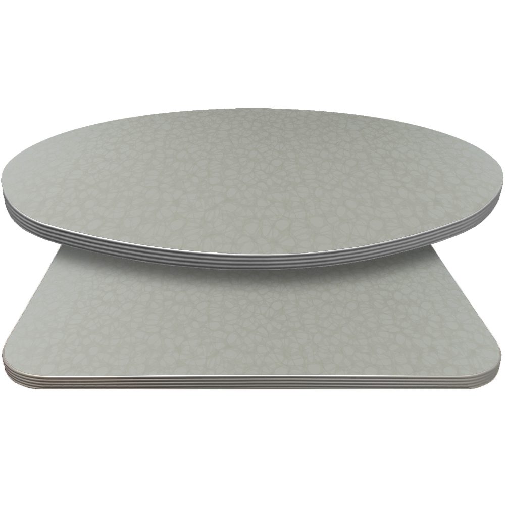 • 1-1/4″ thick, 45 lb. industrial-grade particle board core with high-quality metallic silver rippled rubber t-mold edge.